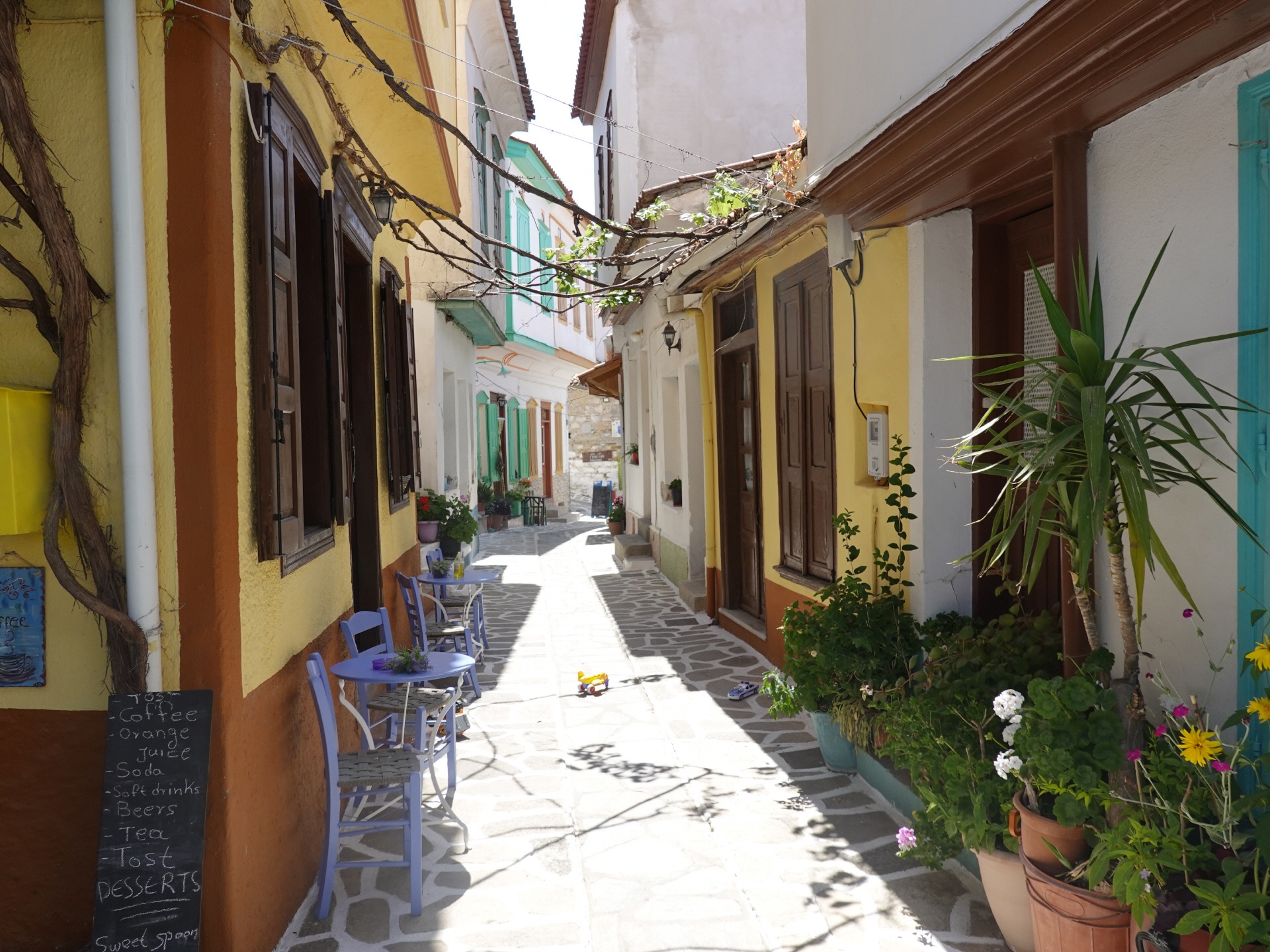 Das Dorfinnere ist autofrei, doch zum Dorfplatz - zur schönen Platia mit guten Tavernen sind es nur ein paar Schritte.