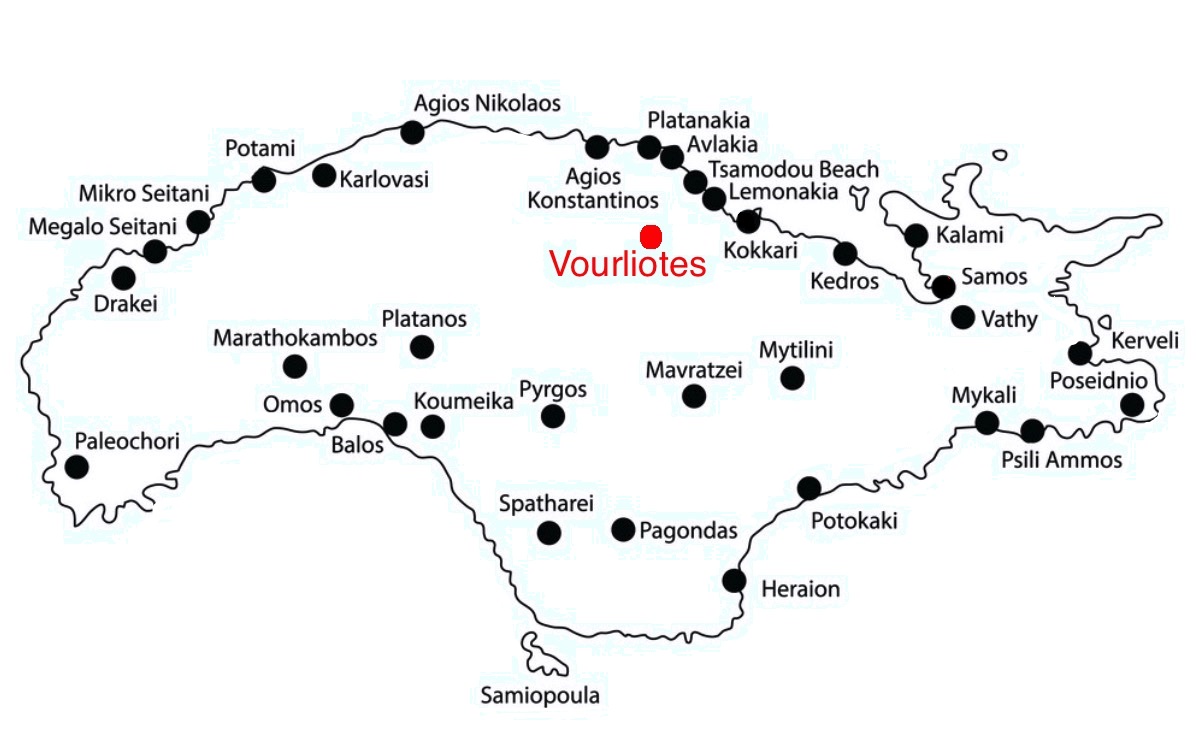 Der Ort bietet typische alte Häuser mit samiotischen Erkern und malerische enge Gassen.
