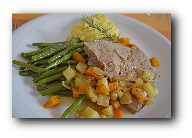 Die Keule vor dem portionieren 10 min. zugedeckt rasten lassen.