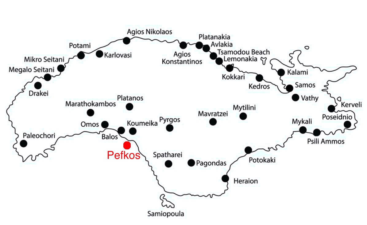Der Pefkos Strand an der Südwestküste von Samos ist einer der ruhigen Strände der Insel.