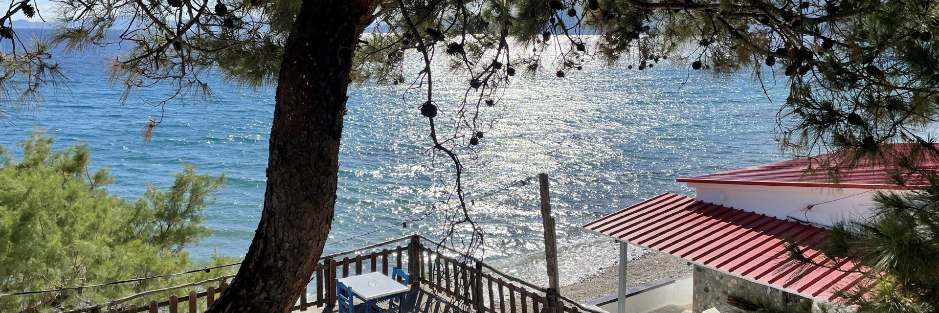 Einen schönen Blick auf den Strand hat man aus dem nur wenige Meter oberhalb des östlichen Endes gelegenem “Bella Vista” .
