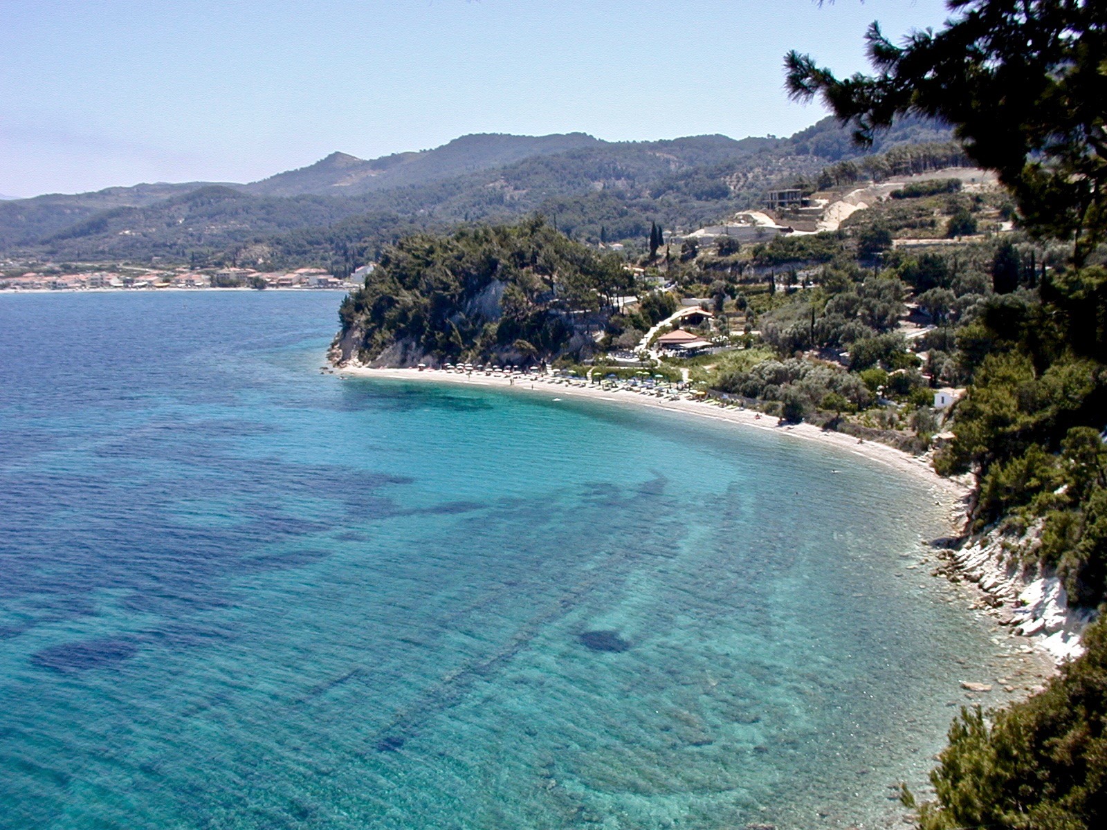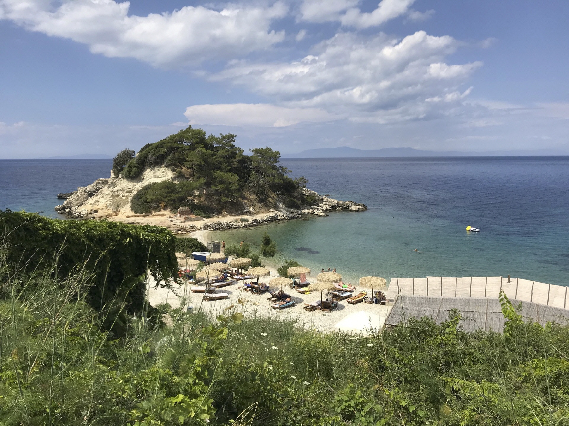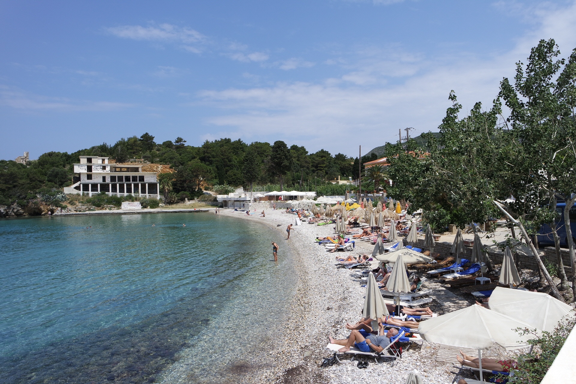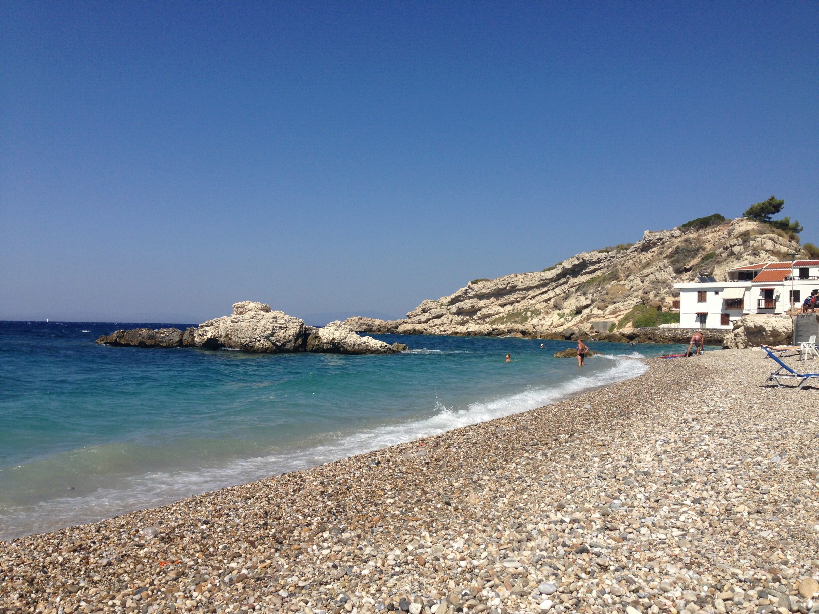An der Hafenpromenade reihen sich Bars und Tavernen und zum Baden eignet sich der " long Beach " bestens. Überall werden Liegen und Schirme vermietet.